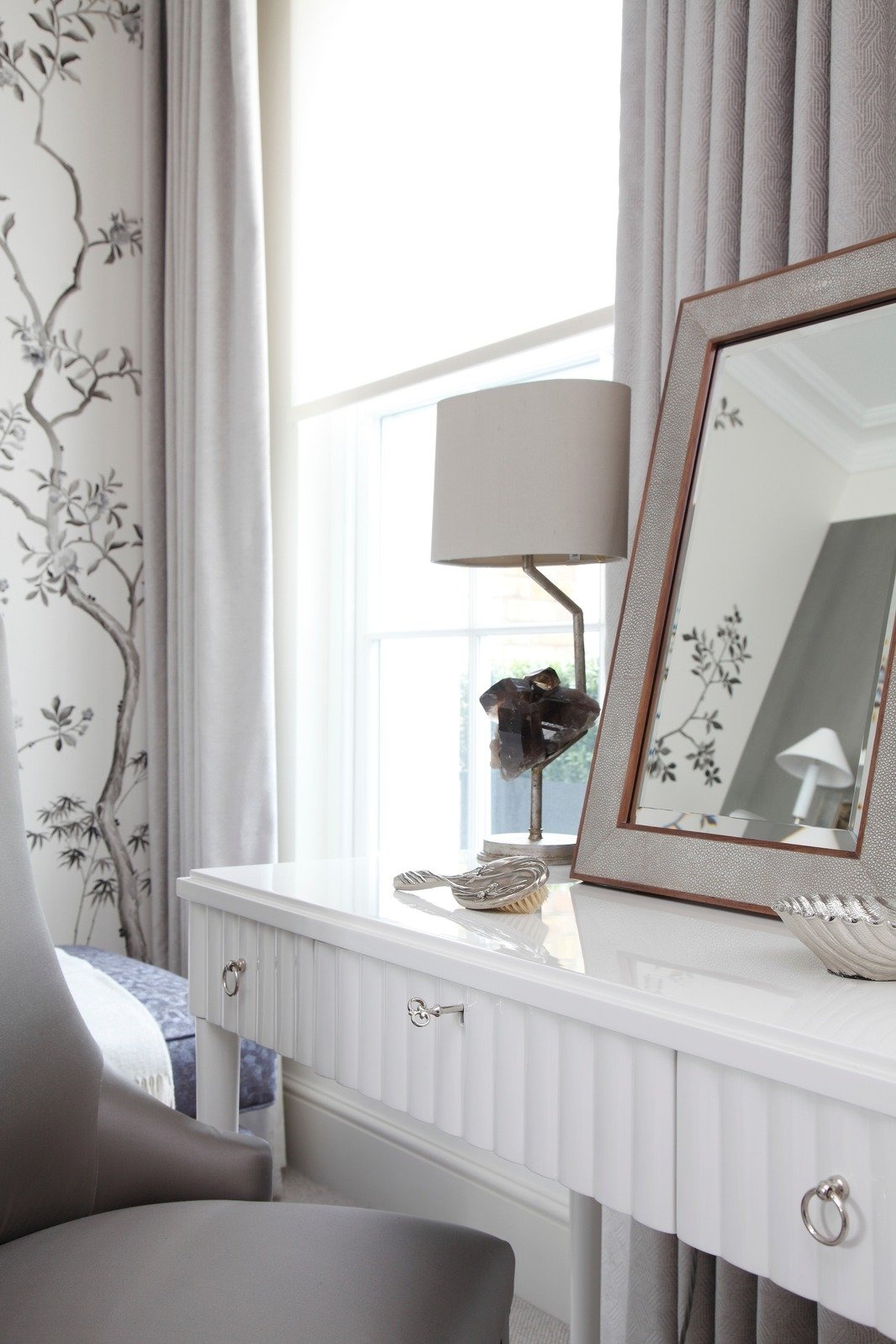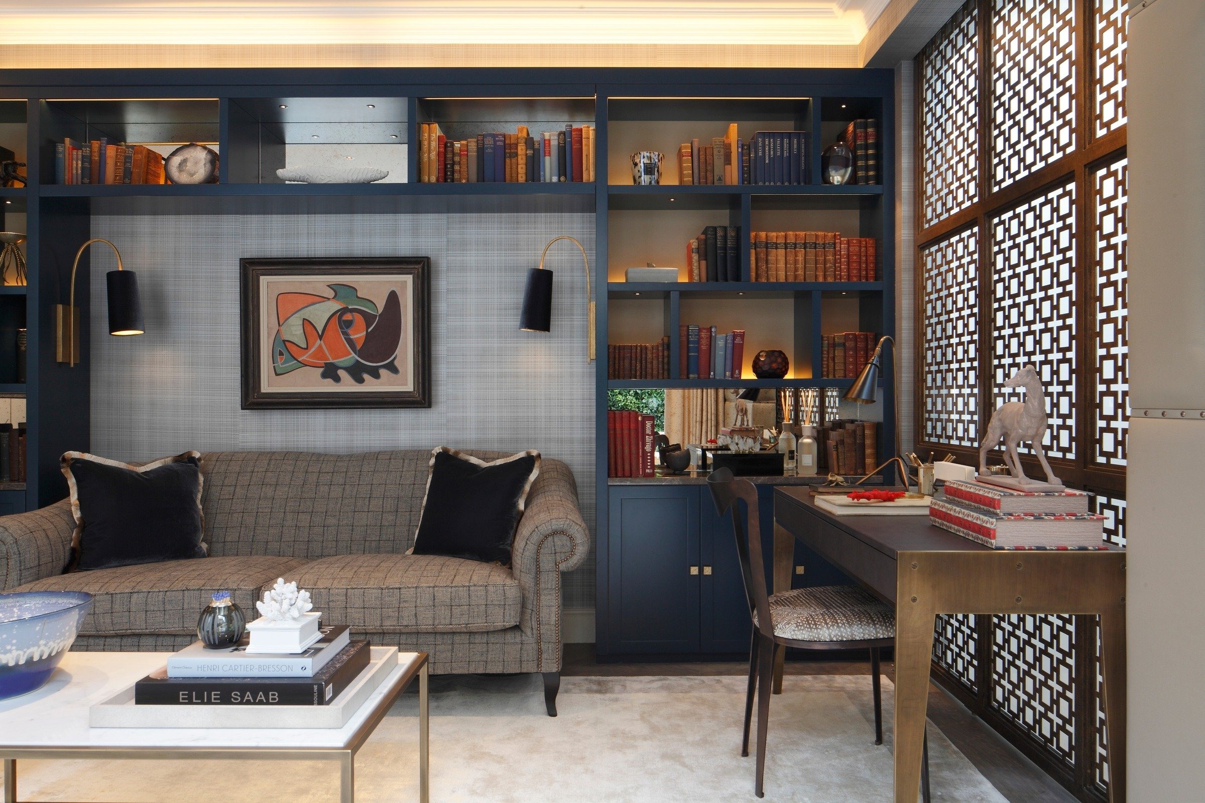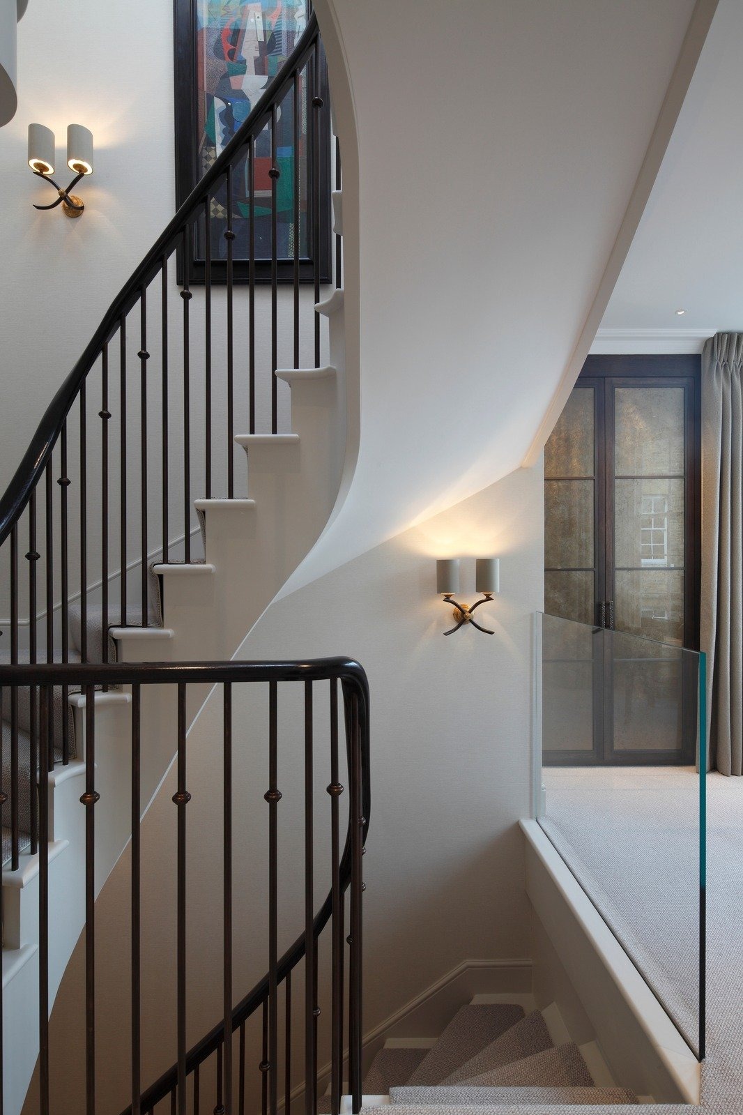 This award-winning new-build townhouse in Chelsea, once a historic builder’s yard, was transformed into a five-storey Georgian-style residence through a double-basement excavation in collaboration with architects, contractors, and developers. Designed to balance classic character with a fresh, elegant scheme, the interiors feature bespoke joinery and furnishings throughout. The entrance hall sets the tone with hand-painted Fromental wallpaper, bronze-tinted mirrors, and a bespoke hall table beneath crystal wall lights. A muted, masculine palette defines the ground-floor study, with Hague Blue joinery, a Tom Faulkner chair, and Porta Romana lighting enhancing the library-like atmosphere, while a decorative screen adds privacy and depth. The bespoke staircase by Smet, with polished mahogany handrail and antique bronze spindles, unites all floors. Bedrooms were individually styled, from a refined child’s room with a velvet chenille headboard and Chelsea Textiles bedside table to serene guest suites, each with unique character. The result is a highly tailored home that combines Georgian elegance with contemporary luxury.