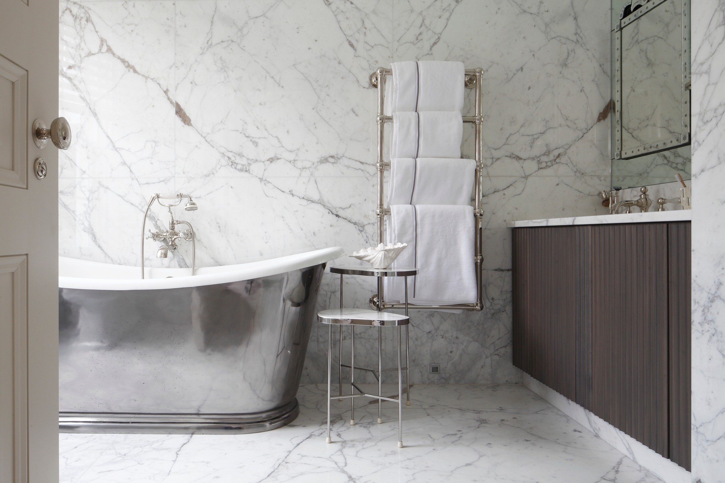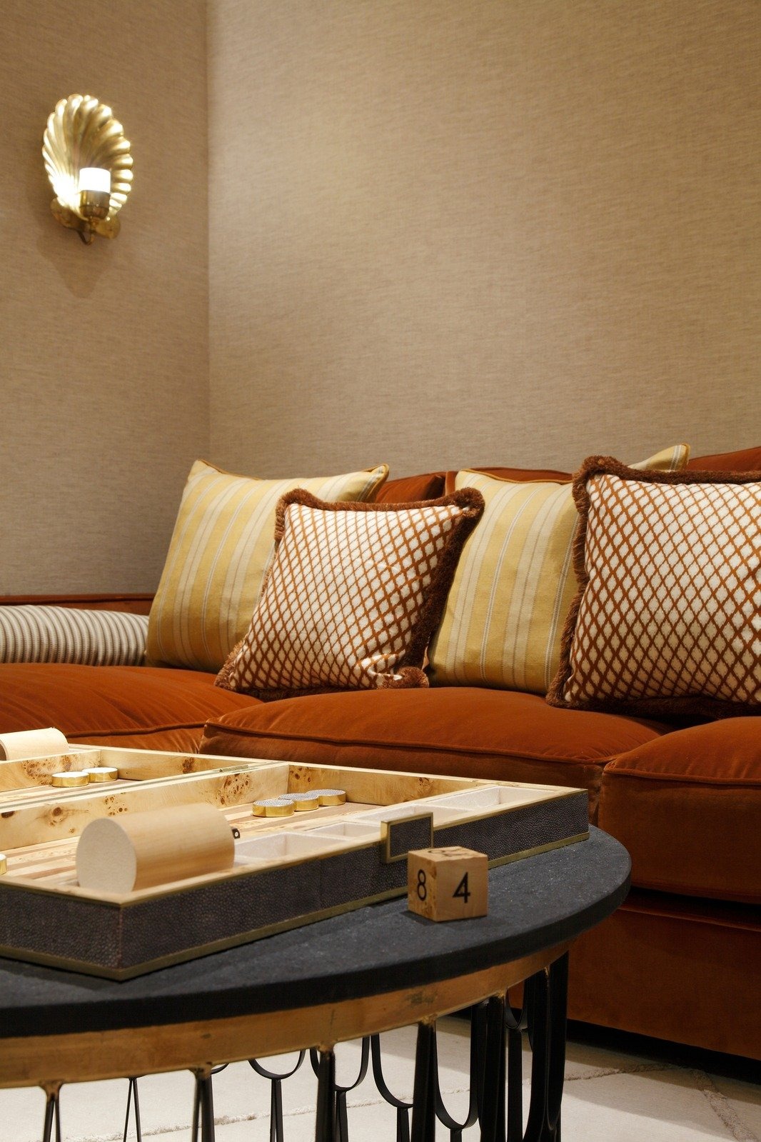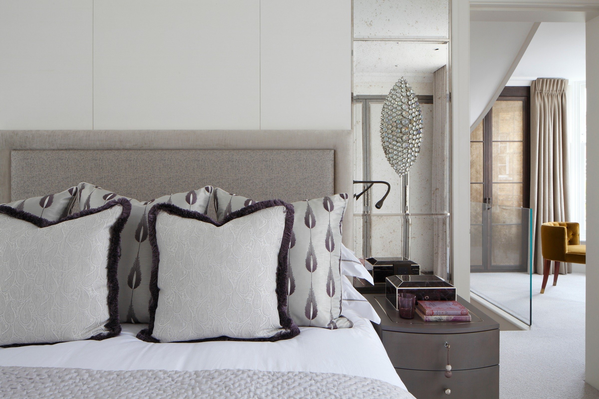 This award-winning new-build townhouse in Chelsea, once a historic builder’s yard, was transformed into a five-storey Georgian-style residence through a double-basement excavation in collaboration with architects, contractors, and developers. Designed to balance classic character with a fresh, elegant scheme, the interiors feature bespoke joinery and furnishings throughout. The entrance hall sets the tone with hand-painted Fromental wallpaper, bronze-tinted mirrors, and a bespoke hall table beneath crystal wall lights. A muted, masculine palette defines the ground-floor study, with Hague Blue joinery, a Tom Faulkner chair, and Porta Romana lighting enhancing the library-like atmosphere, while a decorative screen adds privacy and depth. The bespoke staircase by Smet, with polished mahogany handrail and antique bronze spindles, unites all floors. Bedrooms were individually styled, from a refined child’s room with a velvet chenille headboard and Chelsea Textiles bedside table to serene guest suites, each with unique character. The result is a highly tailored home that combines Georgian elegance with contemporary luxury.